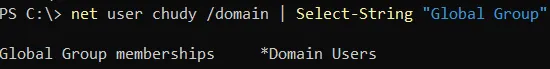 In the second screenshot, we can see that this user belongs to Domain Users group only.