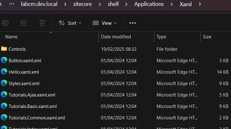 These .xaml.xml files are scattered across a Sitecore installation — for example, in locations like sitecore/shell/Applications/Xaml.