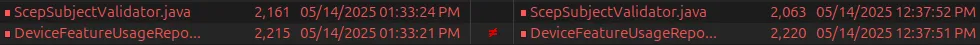 We can see that both ScepSubjectValidator and DeviceFeatureUsageReportQueryRequestValidator classes had been modified.