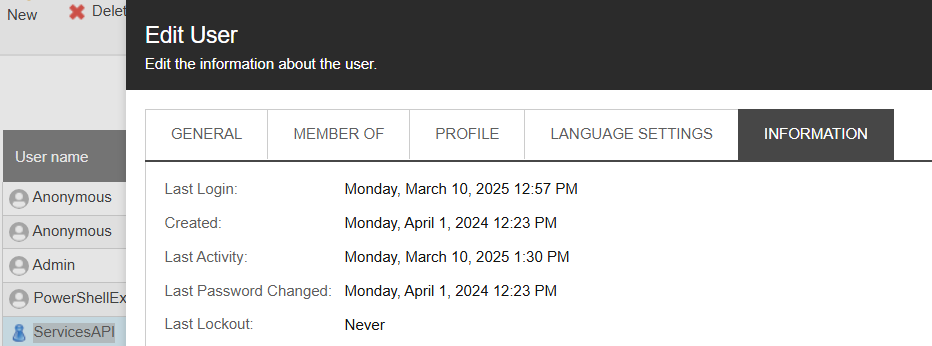 Before this though, we want to highlight a little easter egg: when you verify the details for the sitecore\ServicesAPI user in version 10.4, the created time stamp is 1st April.