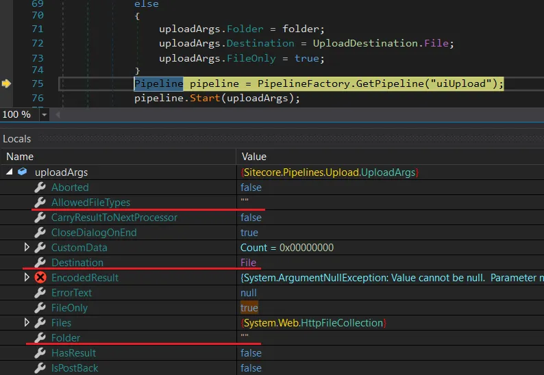 AllowedTypesargument is not set during the process, thus we can upload any extension (kek).uploadArgs.Folderis set on the basis of theItemUriparameter, which we fully control through the HTTP request.