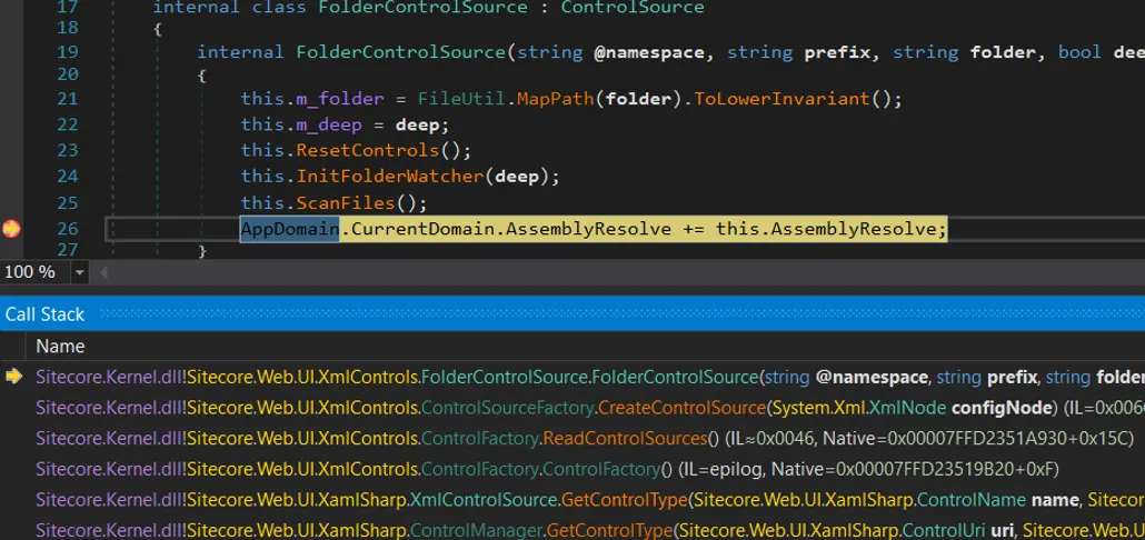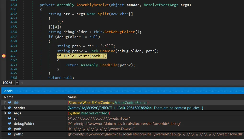 We can see that Sitecore implements an insecure assembly resolver, which can be abused to load arbitrary DLLs.