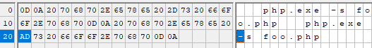 Here are two invocations of php.exe, one malicious and one benign. Can you spot the difference?