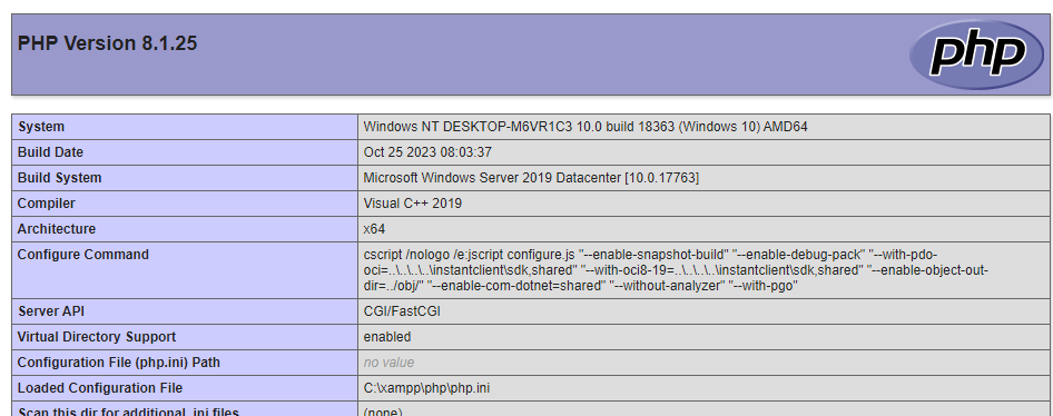 Oh joy - we’re rewarded with a phpinfo page, showing us we have indeed achieved RCE.