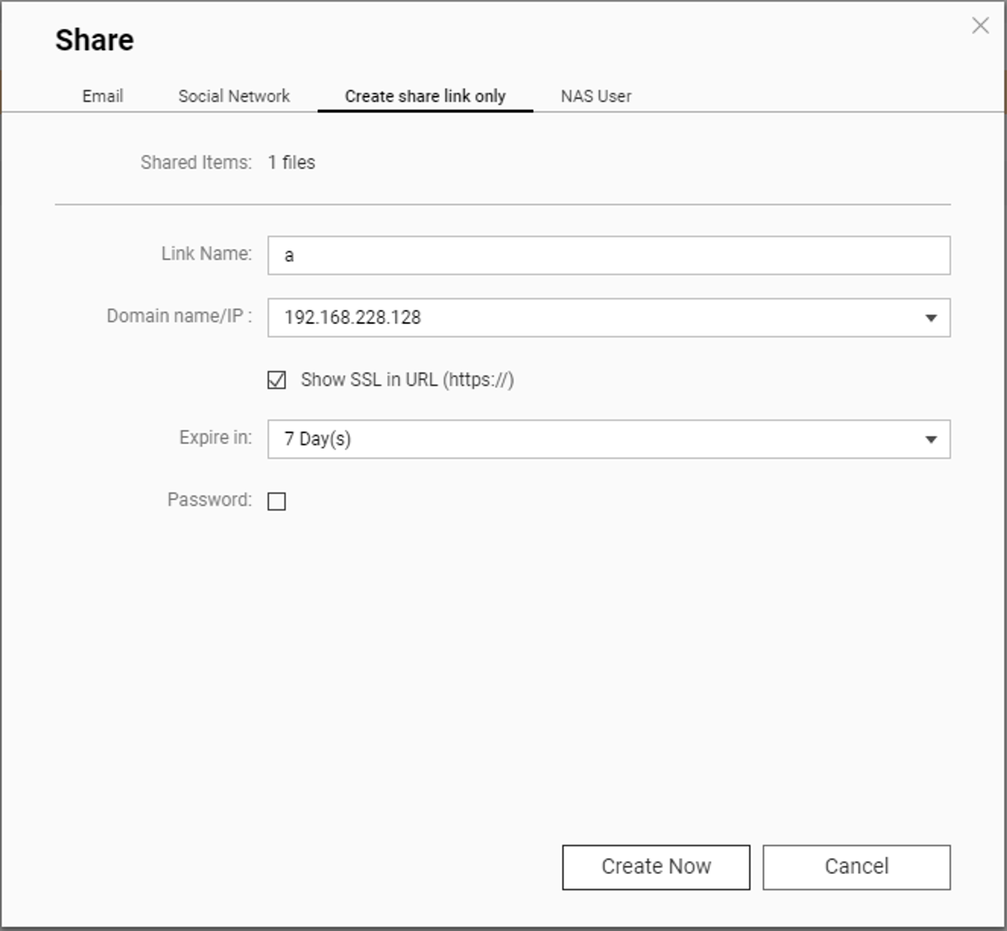 As we mentioned previously, the NAS is designed to work in a multi-user environment, with users sharing files between each other. For this reason, it implements all the user-based file permissions you’d expect - a user could, for example, permit only the ‘marketing’ department access to a specific folder. However, it also goes a little further, as it allows files to be shared with users who don’t have an account on the NAS itself. How does it do this? By generating a unique link associated with the target file.