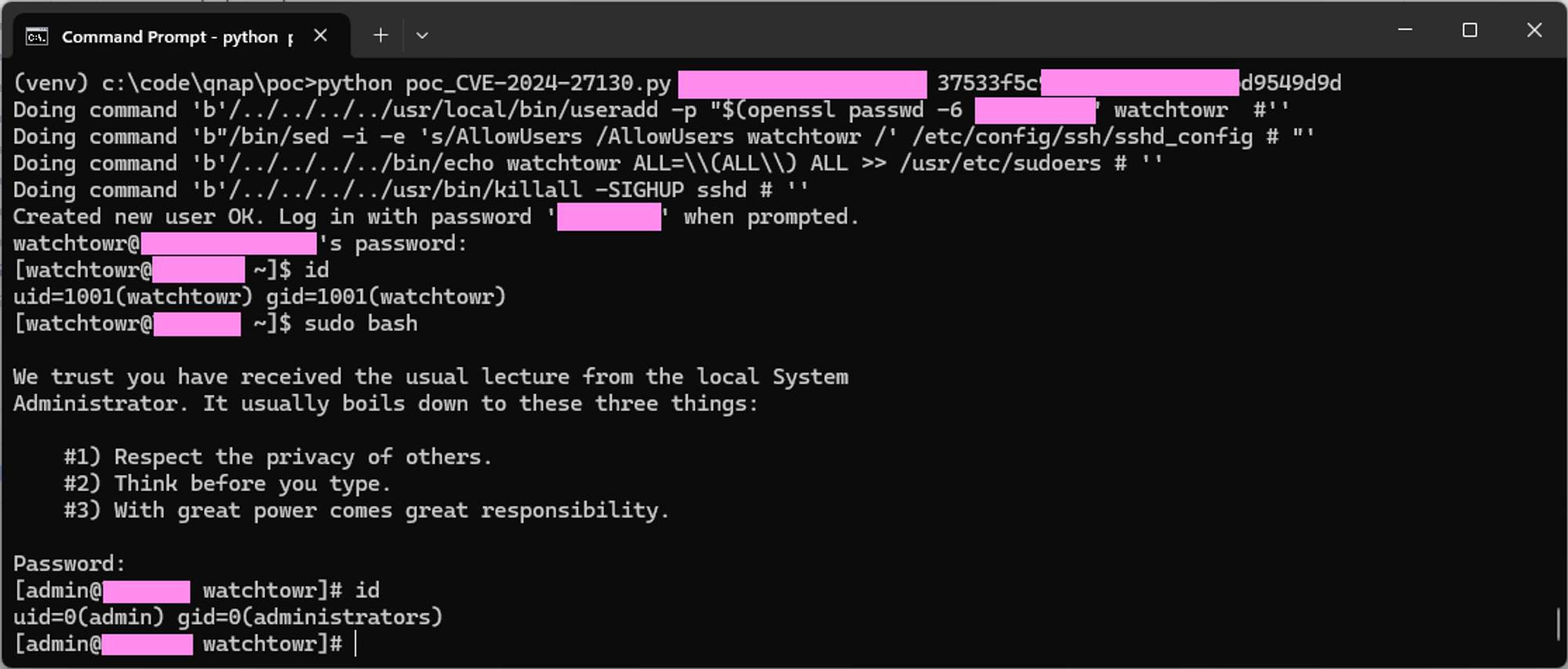 os.system(f'ssh watchtowr@{parsedArgs.host}')Well, almost in its entirety - check out our GitHub repository for the completed PoC and exploit scripts.