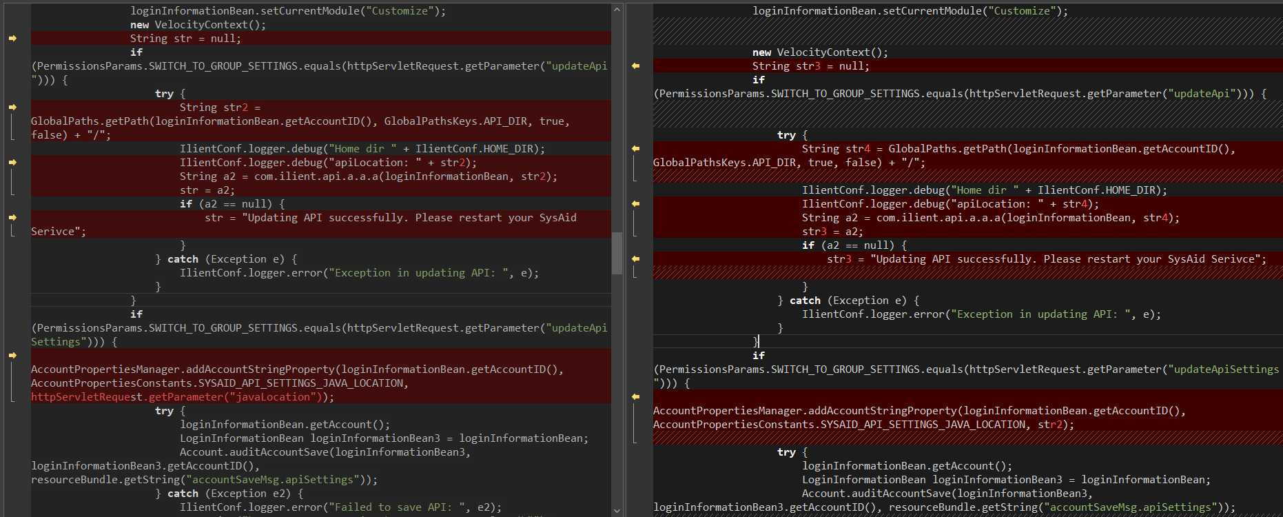 26: IlientConf.logger.error("Error in updating SysAid API jar file", e);