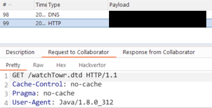 This request contains one of our favorite indicators of successful XXE, a tell-tale Java User-Agent, proving that we're successfully triggering the vulnerability: