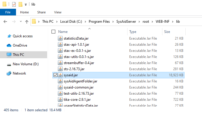 The main application logic resides in sysaid.jar, which is of course your usual 18mb JAR file with hundreds of classes.