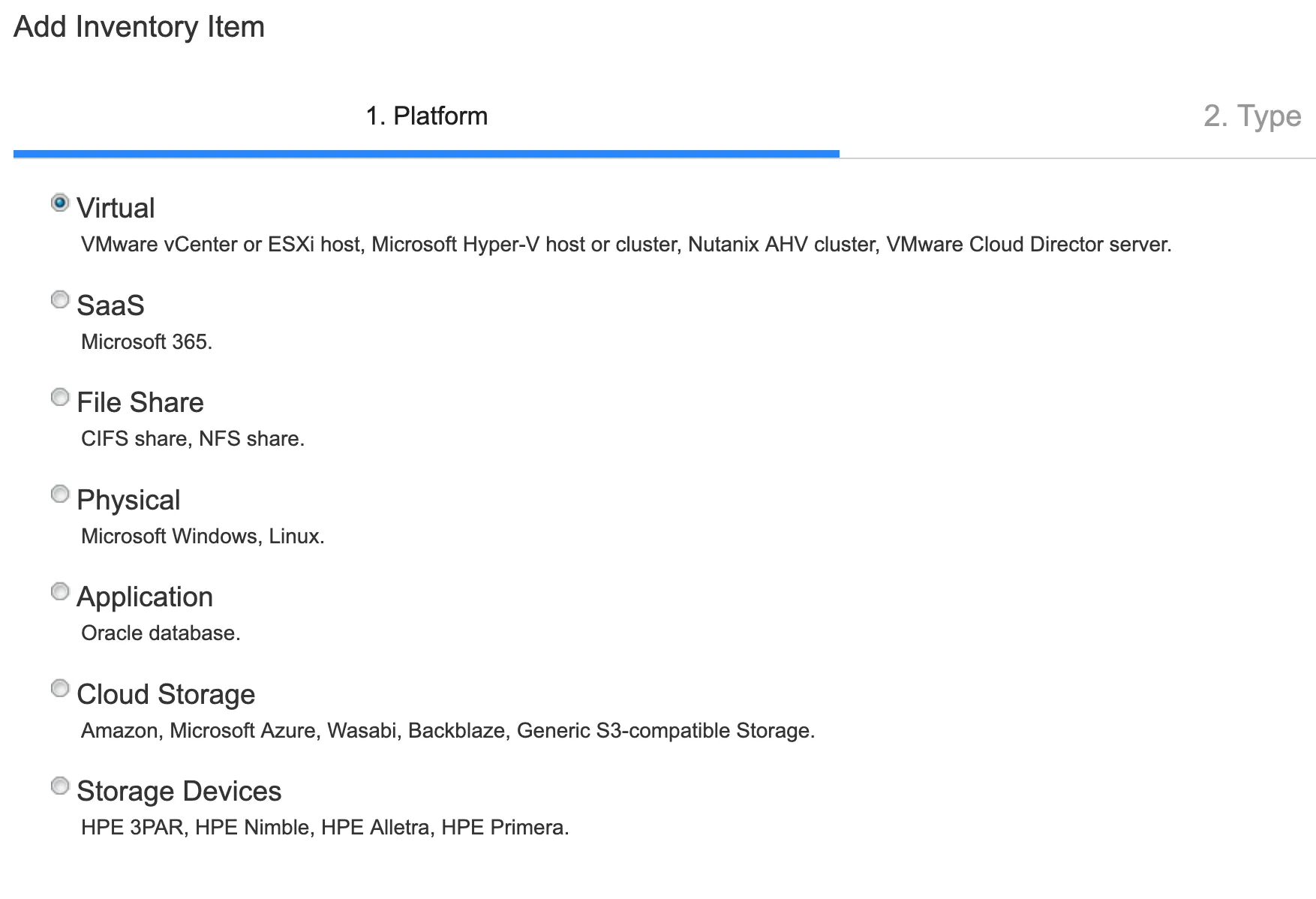 If we recall back to what we mentioned earlier - the NAKIVO solution integrates into a multitude of system types, and when setting up the solution itself to create backups you do indeed have a multitude of options for adding various “Inventory” items: