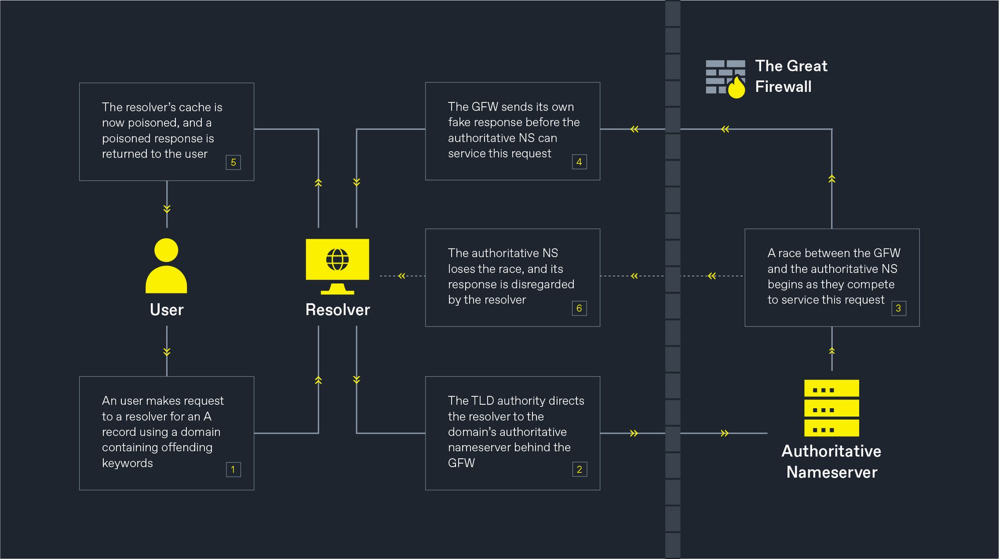 To illustrate, we have outlined one example of how the GFW can tamper with DNS queries.
