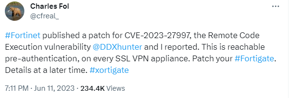 This vulnerability was reproduced by watchTowr researchers on the 11th of June 2023, well ahead of the scheduled embargo lifting on the 13th.