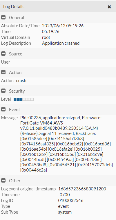 Unfortunately, this is particularly difficult in a device such as a Fortigate appliance, where all application logic is compiled into a large 66-megabyte init binary. Indeed, the 'resolved issues' section for the patched 7.0.12 states over 70 issues alone (including the enticing-sounding 'Kernel panic occurs when receiving ICMP redirect messages'). Time to wade through the changes!